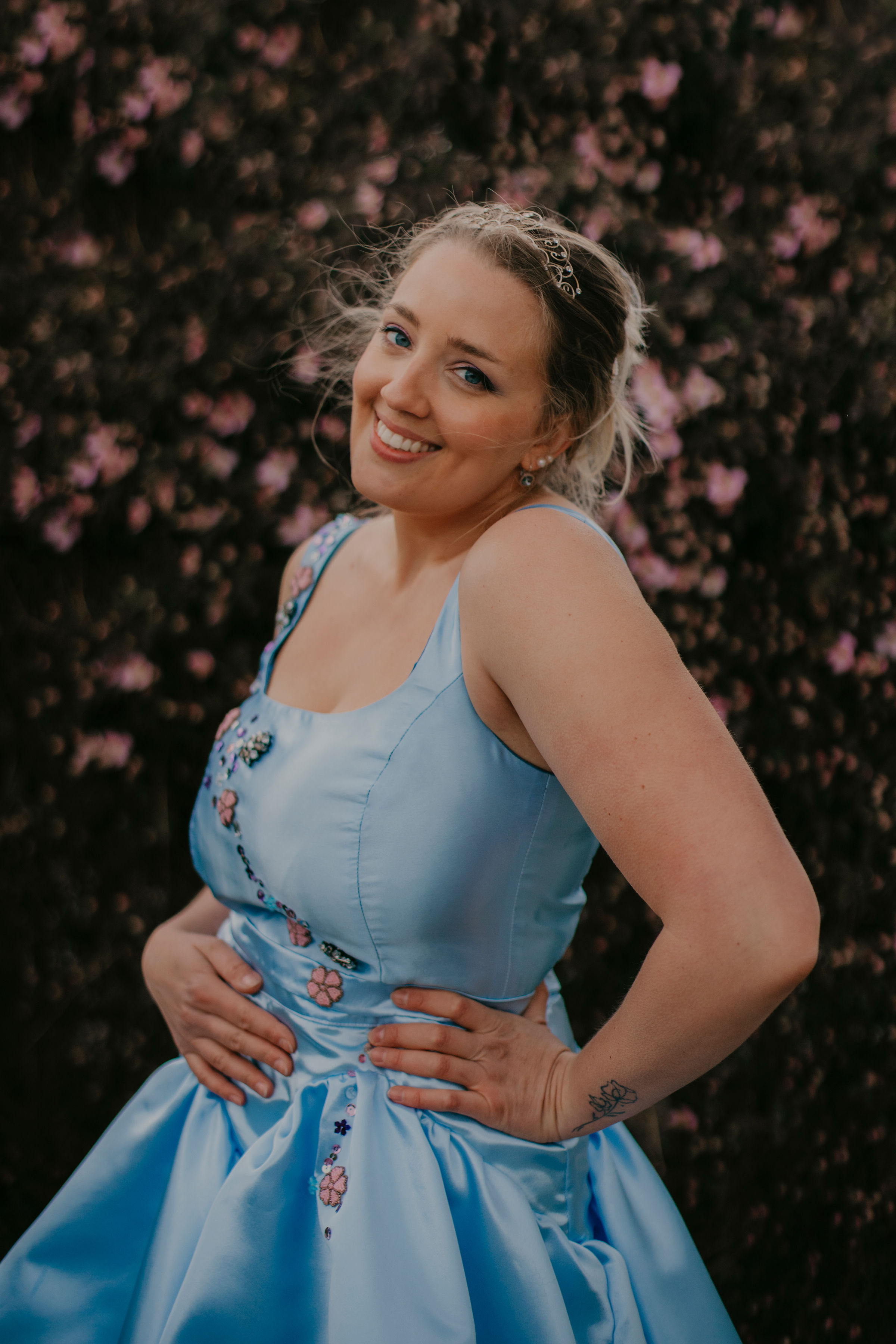 Formée en stylisme-modélisme, avec une spécialisation mariage, j’ai d’abord travaillé dans le prêt-à-porter avant de me lancer dans le sur-mesure (robes de cérémonie, robes de mariée, accessoires).