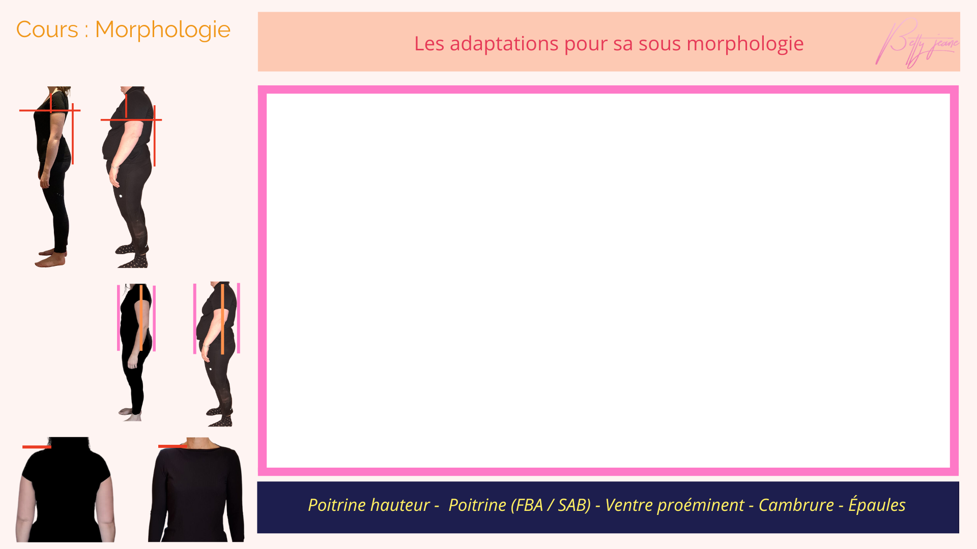 Le dernier module du cours morphologie est consacré à la compréhension des adaptations patronnage. Nous évoquons les modifications à étudier afin de se rapprocher d'un modèle sur-mesure.