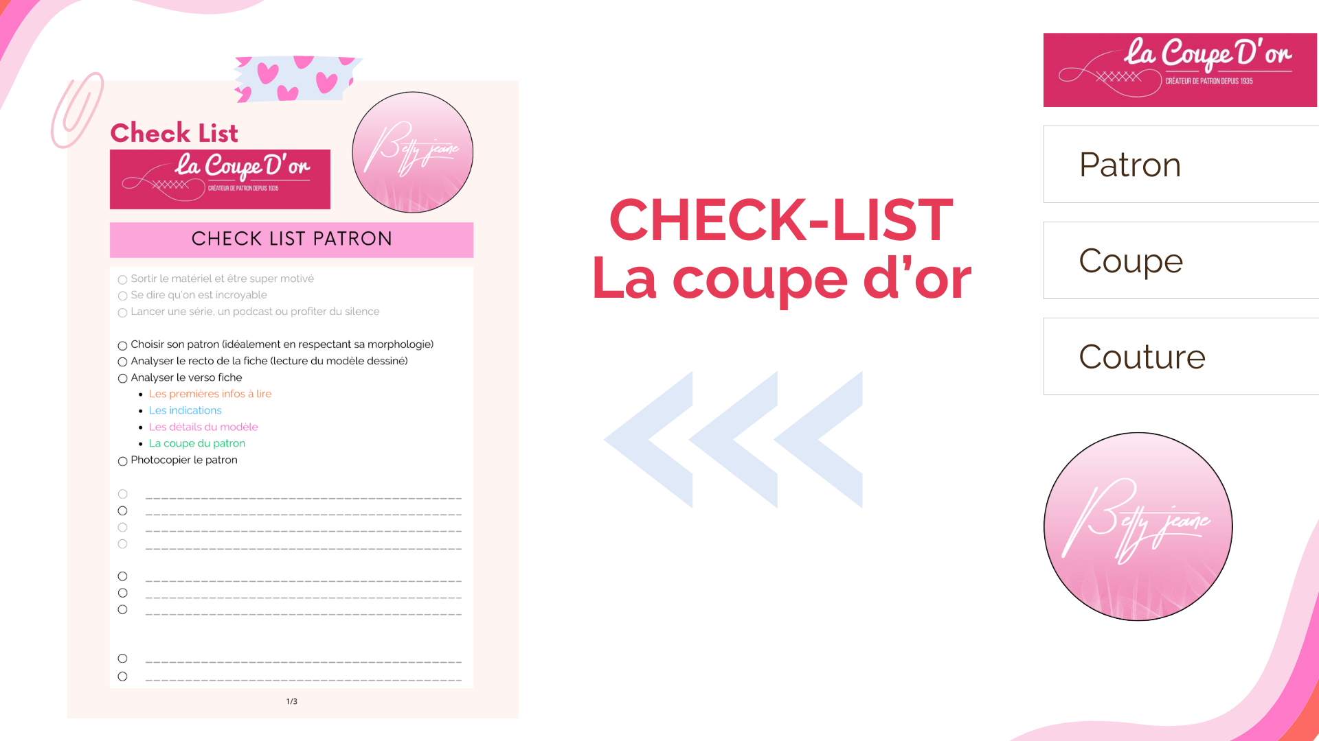 La check list de patron, de coupe et de couture.