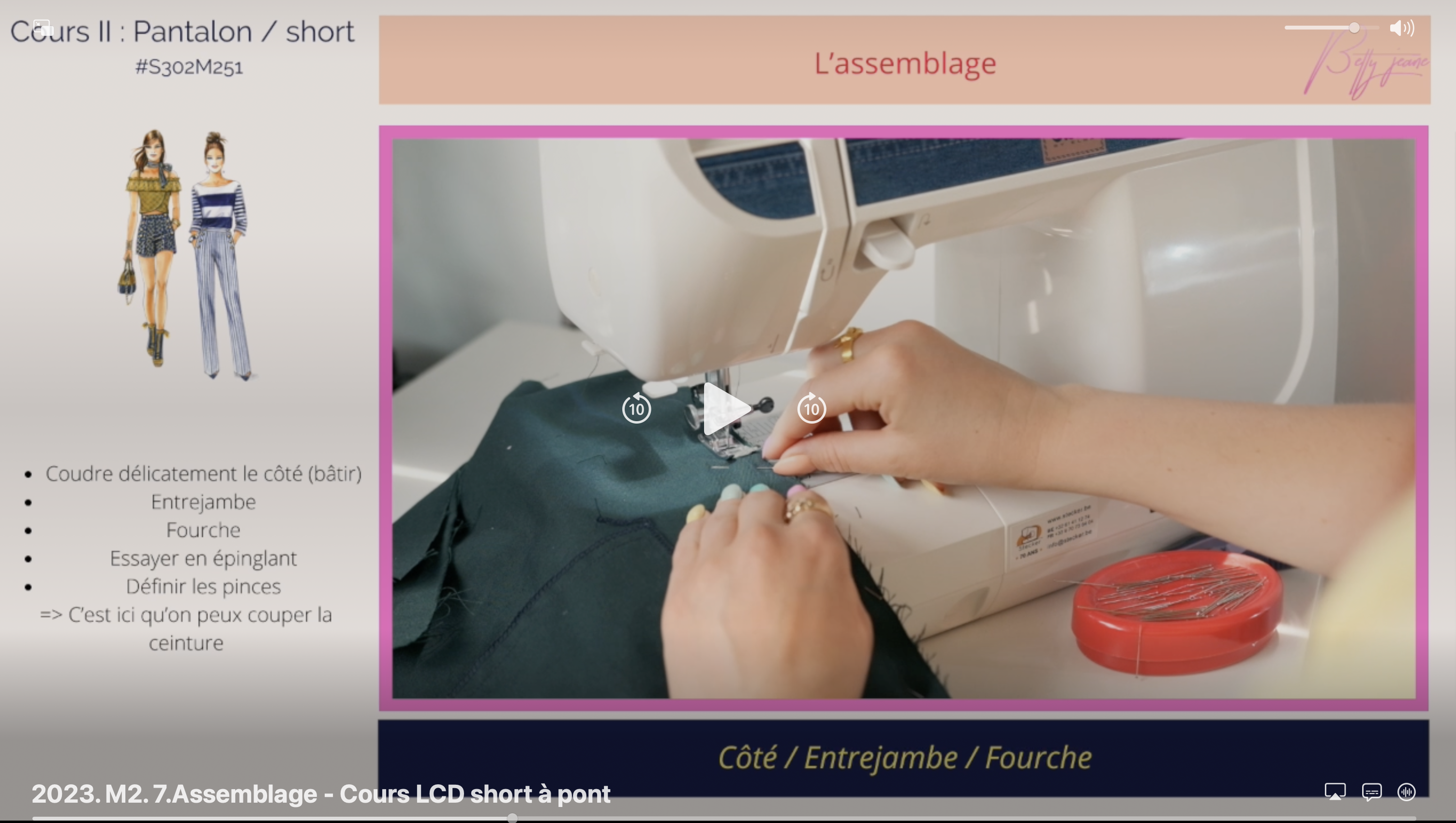 La formation sur le pantalon / short à pont se réparti en 2 modules